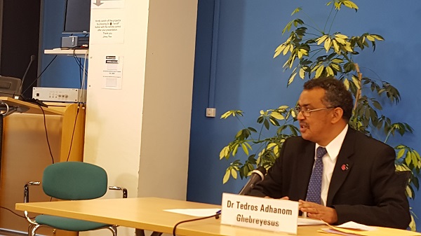 WHO Director-Elect Tedros In US, Meeting With Funders, International Organisations, Governments 12/06/2017 by William New, Intellectual Property Watch 1 Comment Share this:Click to share on Twitter (Opens in new window)Click to share on LinkedIn (Opens in new window)Click to share on Facebook (Opens in new window)Click to email this to a friend (Opens in new window)Click to print (Opens in new window)World Health Organization Director-Elect Tedros Adhanom Ghebreyesus in touring the United States this week, visiting key funders of the WHO, partner international organisations, US government agencies and nongovernmental organisations, and a Canadian ministry. Dr. Tedros Adhanom Ghebreyesus meets with UN journalists earlier this year In a new process for WHO (IPW, WHO, 7 June 2017), Tedros was elected at the annual World Health Assembly late last month (IPW, WHO, 23 May 2017). He held his first meeting with UN press the next day (IPW, WHO, 24 May 2017), in which he indicated that he would be talking with the Trump administration about its proposed drastic cuts in funding for global health. The US government and US-based Bill and Melinda Gates Foundation are among the largest funders of the WHO. Tedros takes office on 1 July. The full WHO press release is reprinted below: WHO DG-elect on high-level US tour to advance new vision for WHO WHO Director-General elect, Dr Tedros Adhanom Ghebreyesus is in the United States of America 12-17 June to share his vision for the World Health Organization with global leaders, before taking up his new position on 1 July. Over five days Dr Tedros will meet with Bill Gates, co-chair of the Bill & Melinda Gates Foundation; Jim Kim, World Bank Group President; Anthony Lake, UNICEF Executive Director; Tom Price, Secretary of US Health and Human Services; and others, including leadership for the Canadian Ministry of International Development and La Francophonie, Carter Center, United Nations, US Agency for International Development, US Centers for Disease Control and Prevention, and the US State Department. On Monday 12 June 2017, Dr Tedros will address global health leaders gathered at the Rotary Convention in Atlanta to reaffirm commitment to eradicating polio. In the first of a series of trips planned to WHO’s regional offices, the Director-General elect will also visit the headquarters of WHO’s regional office for the Americas, the Pan American Health Organization (PAHO) in Washington DC. Dr Tedros has consistently described his top priority as Director-General to be the pursuit of health for all people. He has also emphasized the importance of strengthening countries’ capacity to respond to health emergencies, be these disease outbreaks or humanitarian crises, as well as the need to put the wellbeing of women, children and adolescents at the centre of health and development and to advance work on climate change and health. The Director-General elect has also committed to build on existing efforts to turn WHO into a more effective, transparent, and accountable agency, stressing the critical value of partnerships. “I look forward to the opportunity to meet so many key partners while in the United States. I want everyone to know that from my first day in office, I am determined for WHO to be the best possible partner for global health.” Dr Tedros, formerly Minister of Health, and Foreign Minister for Ethiopia, was elected Director-General of WHO on 23 May 2017. Image Credits: William New Share this:Click to share on Twitter (Opens in new window)Click to share on LinkedIn (Opens in new window)Click to share on Facebook (Opens in new window)Click to email this to a friend (Opens in new window)Click to print (Opens in new window) Related William New may be reached at wnew@ip-watch.ch."WHO Director-Elect Tedros In US, Meeting With Funders, International Organisations, Governments" by Intellectual Property Watch is licensed under a Creative Commons Attribution-NonCommercial-ShareAlike 4.0 International License.